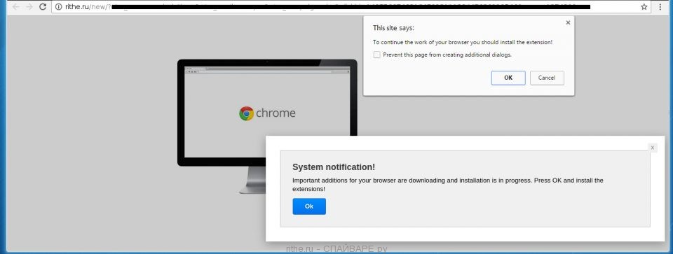 Если у вас стали появляться всплывающие сообщения с сайта rithe в Гугл Хроме, Мозилла Файрфоксе или Интернет Эксплорере, которые предлагают установить неизвестное расширение в браузер, значит ваш компьютер стал жертвой рекламного вируса. Этот компьютерный паразит создан только для того, чтобы показывать разные вводящие в заблуждение сообщения, всплывающие окна и рекламу. Так же за возникновение всплывающих