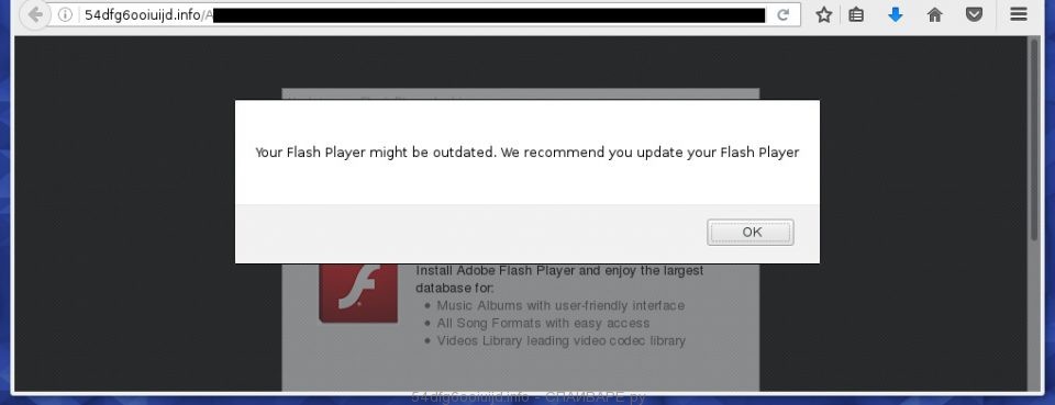 Всплывающие окна с сайтом 54dfg6ooiuijd.info в Гугл Хроме, Мозилла Файрфоксе или Интернет Эксплорере, который предлагает обновить видео проигрыватель, скачать новую версию флеш плеера, установить новый антивирус — есть ни что иное как вид вводящей в заблуждение рекламы. Основная задача этого сайта, тем или иным способом заставить вас скачать и запустить предлагаемый файл. Лучше этого никогда