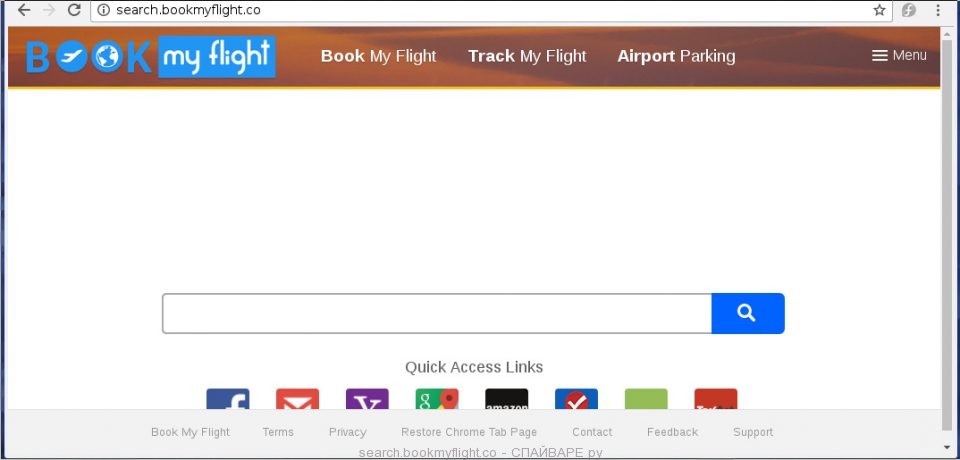 Автоматическое открытие сайта Search.bookmyflight.co при каждом запуске Хрома, Файрфокса, Оперы или Интернет Эксплорера говорит о том, что настройки ваших браузеров были изменены. С технической точки зрения,причиной этих изменений является небольшая программа, основная цель которой — это модифицировать настройки программ Internet Explorer, Google Chrome, Opera и Mozilla Firefox, установив в качестве домашней страницы и поисковой машины