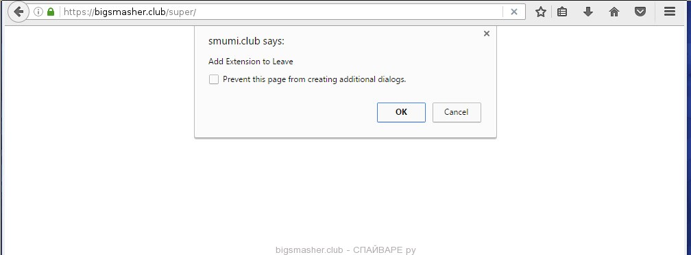 Сайт bigsmasher.club относится к группе рекламных сайтов. Он создан с одной целью — приносить своим создателям деньги. И делает это, демонстрируя пользователям вводящую в заблуждение рекламу, которая предлагает установить неизвестное расширение в браузер. Появление этого сайта в вашем браузере, чаще всего свидетельствует о наличии на компьютере рекламного ПО (другое название — рекламный вирус или adware). Рекламный вирус, может вставлять навязчивые рекламные сообщения прямо в содержимое сайтов, которые открываются в браузере. При этом форма рекламы может быть разной: всплывающие окна, различного размера баннеры, рекламные ссылки, предложения скачать и установить неизвестные программы, сообщения о необходимости обновить флеш плеер или антивирус и так далее. Таким образом, в результате проникновения на компьютер рекламного ПО, ваш браузер заполниться тысячами рекламным сообщений, что приведет к замедлению работы компьютера и скорости загрузки веб страничек в Интернете. Поэтому, очевидно, что нужно как можно быстрее проверить компьютер, чтобы найти и удалить рекламный вирус. Этим вы восстановите нормальную работу компьютера и уберете навязчивую рекламу из браузера.